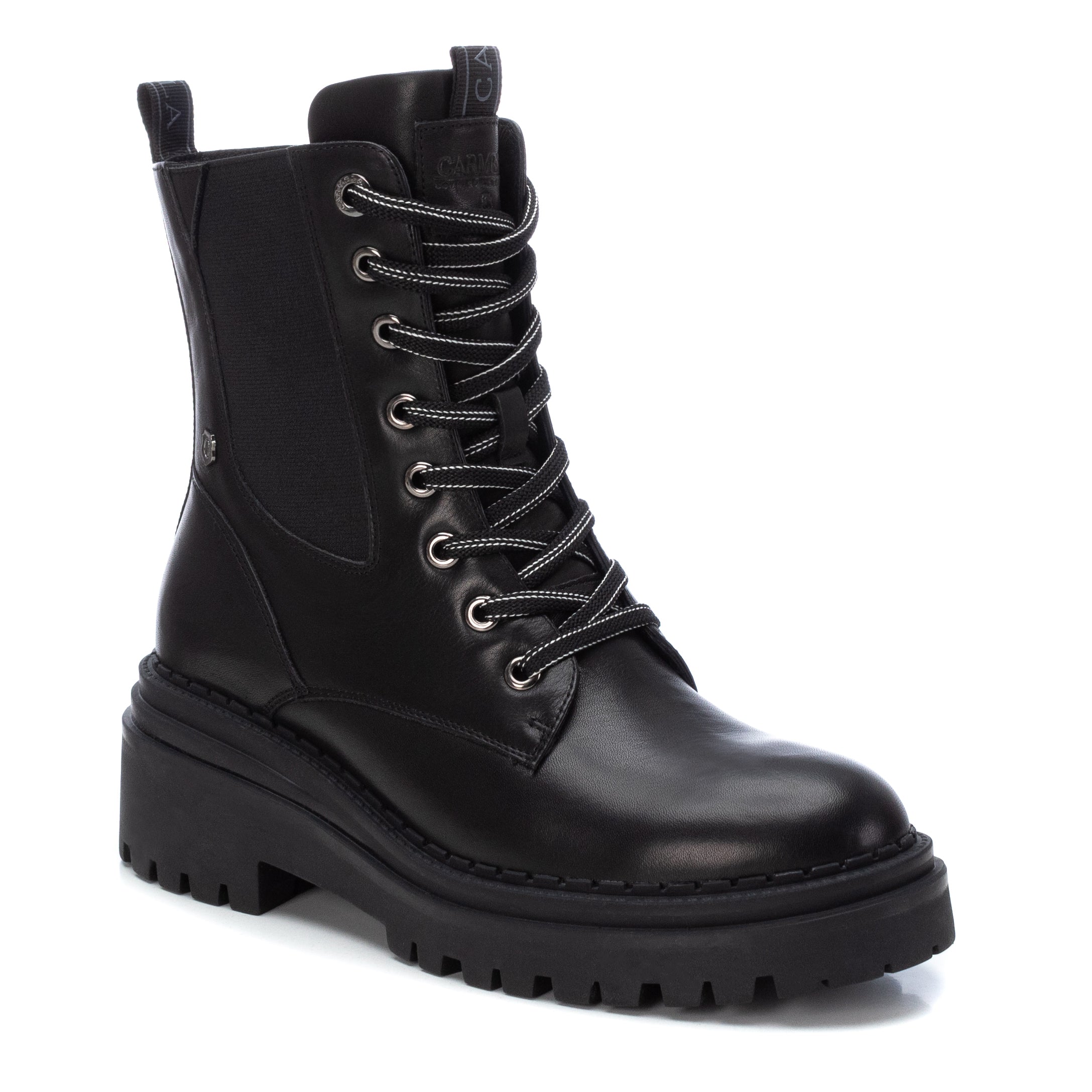 Bota feminina de cano curto, da marca Carmela. Feito de couro de alta qualidade com uma faixa lateral de tecido elástico. Fecho de zíper. Uma fusão de botas Chelsea e botas de combate estará em alta nesta temporada. Combine estilo e conforto e não perca nenhum plano.