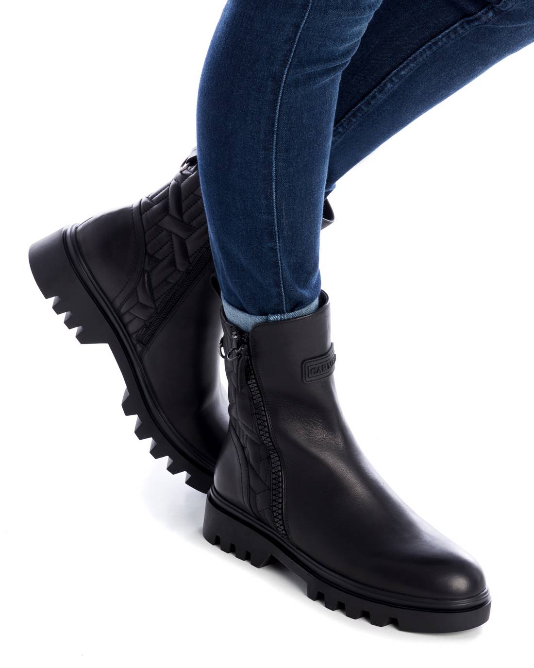 Bota feminina de cano curto, da marca Carmela. Feito de couro de alta qualidade. Fecho de zíper interno com puxador traseiro para fácil colocação. Zíper lateral decorativo na mesma cor. Sola de borracha grossa e antiderrapante. Etiqueta de borracha da marca na frente. Seu quilting geométrico transforma um modelo simples em uma tendência atual, perfeita para completar seus looks.