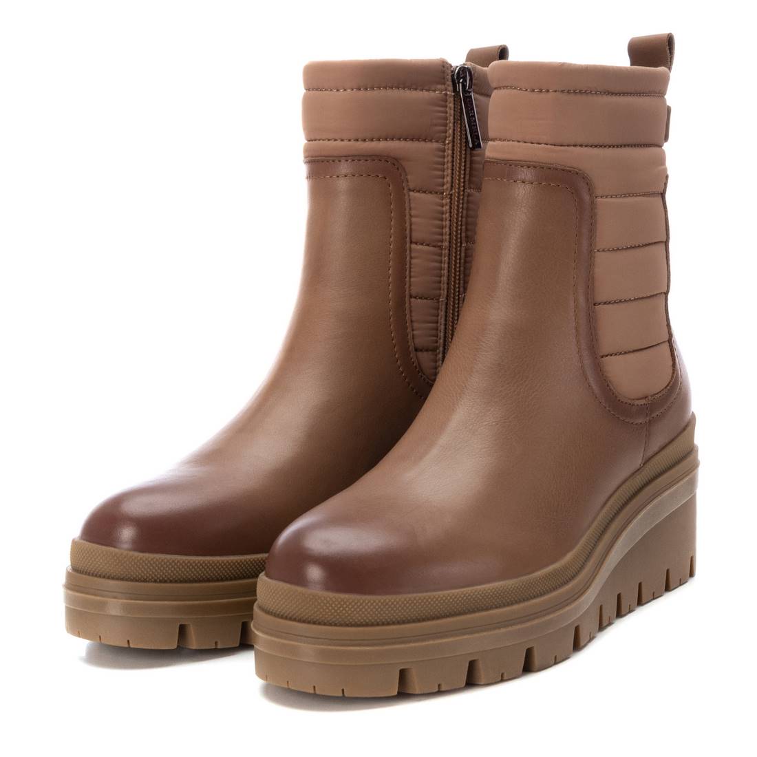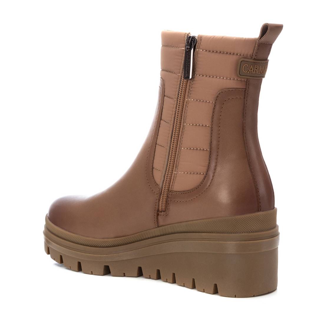 Bota feminina de cano curto, da marca Carmela. Feito de couro de alta qualidade combinado com nylon acolchoado. Fecho de zíper interno. Plataforma de 5 cm com nome da marca, solado de borracha antiderrapante. Um modelo ideal para seus looks de inverno.