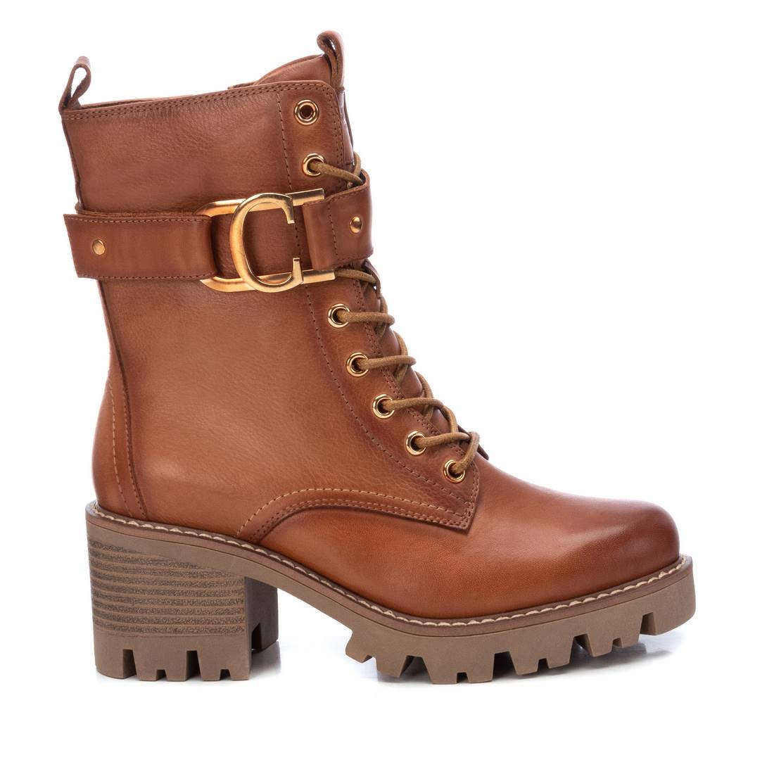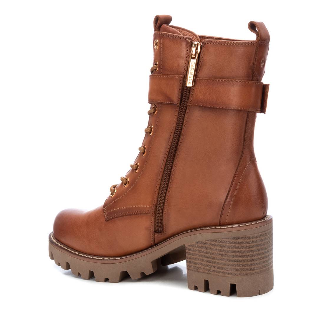 Bota feminina de cano curto, da marca Carmela. Feito de couro de alta qualidade. Fecho de zíper lateral com cadarços ajustáveis. Puxador traseiro para fácil colocação. Alça com detalhe metálico com logo da marca. Salto de 7 cm de largura e sola de borracha antiderrapante.