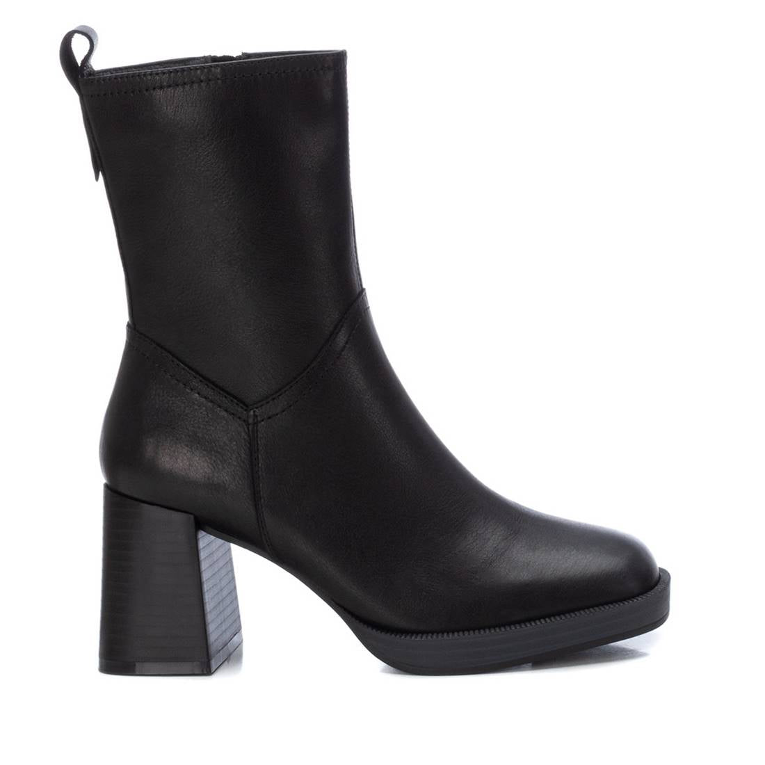 Bota feminina de cano curto, da marca Carmela. Feito de couro de alta qualidade. Fecho de zíper lateral. Puxador traseiro para fácil colocação. Salto largo de 8 cm e plataforma para maior conforto. Sola antiderrapante. Este modelo será um must-have nesta temporada.