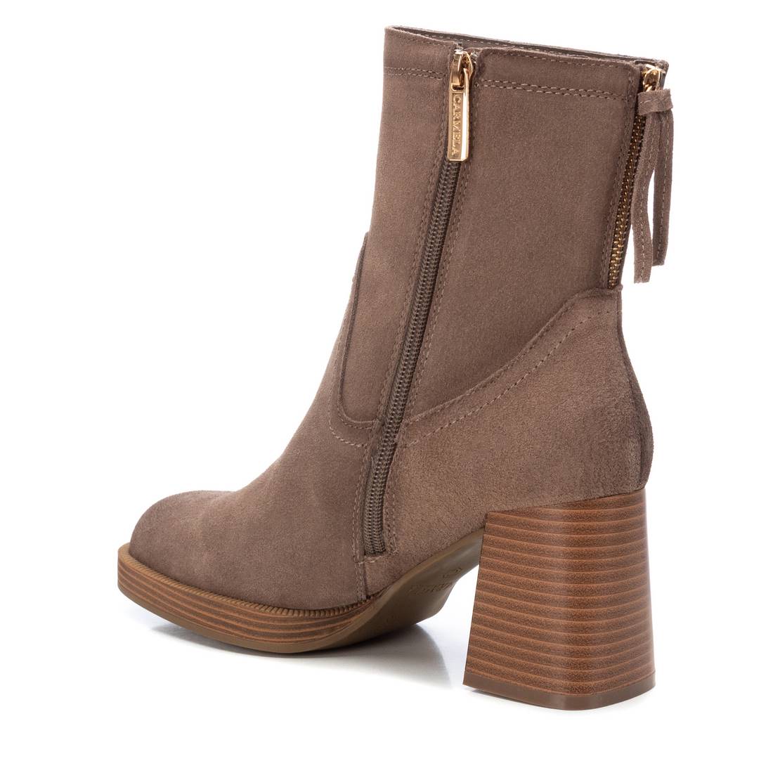 Bota feminina, da marca Carmela. Feito de couro dividido de alta qualidade. Fechamento traseiro com zíper. Bota com salto de 8 cm de largura e plataforma para maior conforto. Sola antiderrapante.