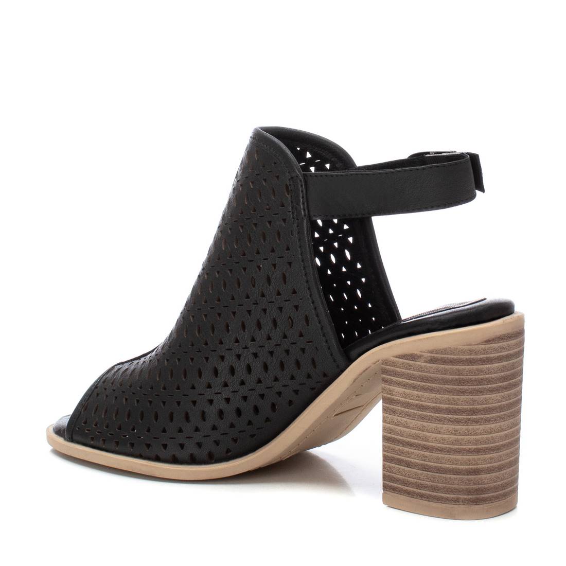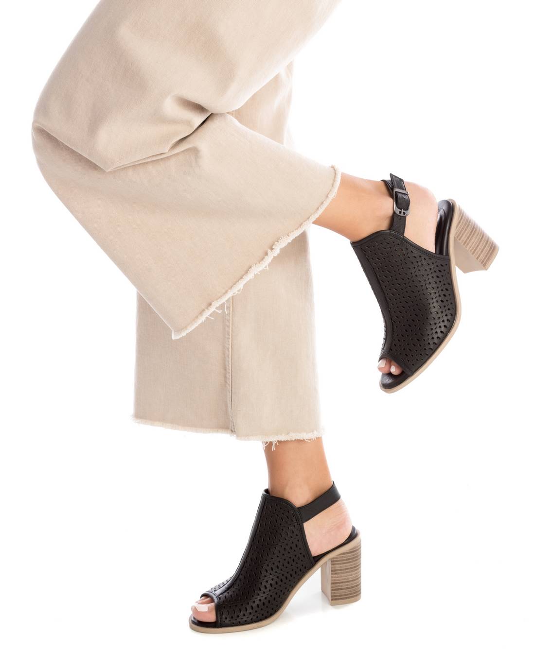 Sandália feminina, da marca Carmela. Feito de couro de alta qualidade decorado com um design perfurado. Modelo estilo botinha na frente e fecho por tira de fivela atrás. Salto de 8 cm de largura e solado de borracha antiderrapante.