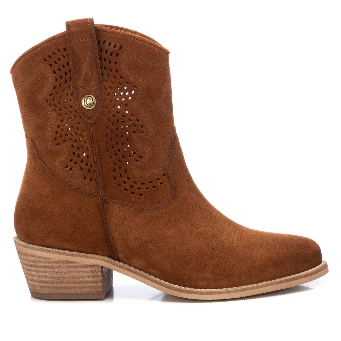 Botas de cowboy femininas, da marca Carmela. Feito de camurça de alta qualidade. Decoração com design picado na lateral. Fecho de zíper lateral. Salto de 5 cm e sola antiderrapante.