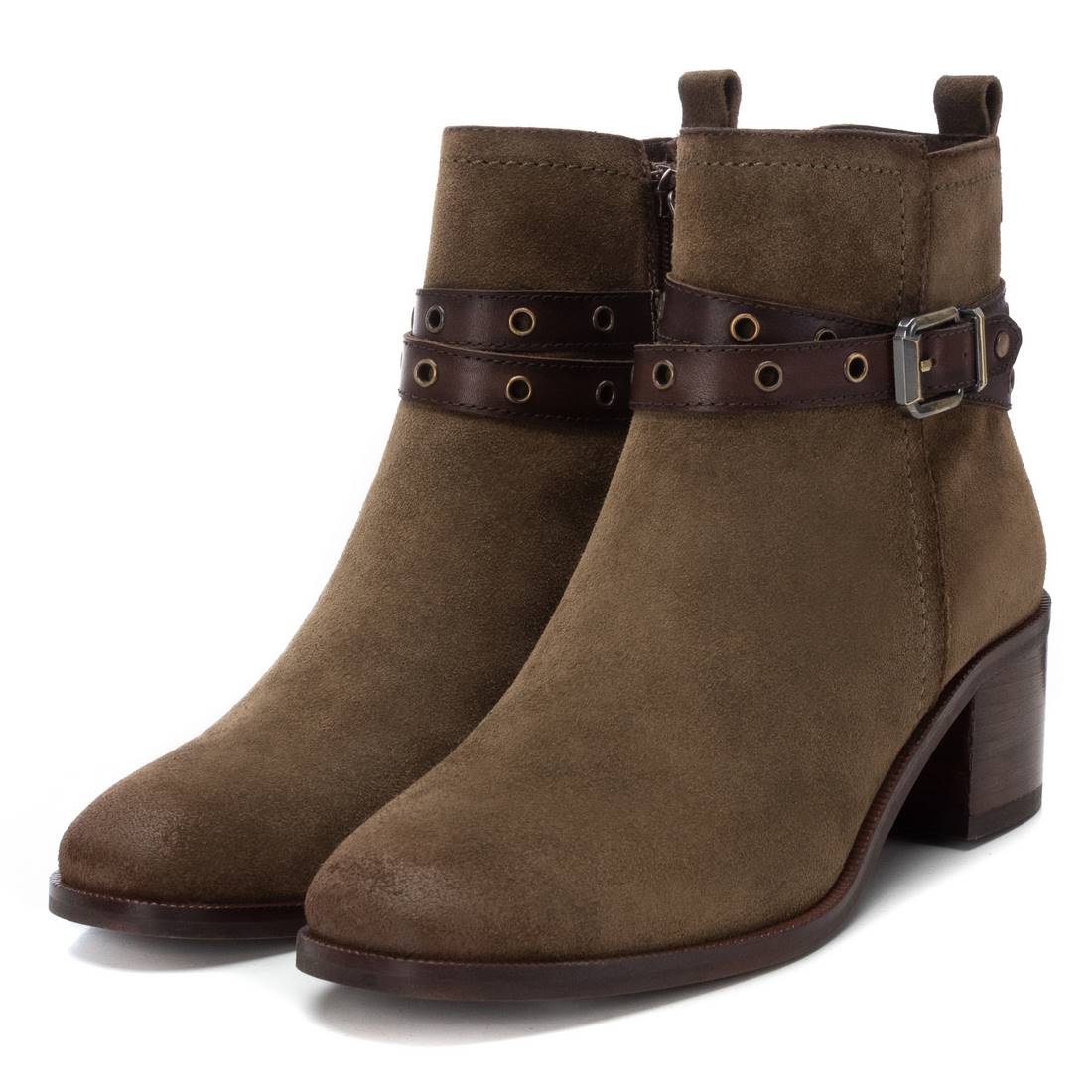 Bota feminina de cano curto, da marca Carmela. Feito de camurça de alta qualidade. Fecho de zíper lateral e puxador traseiro para melhor ajuste. Fivela metálica decorativa.