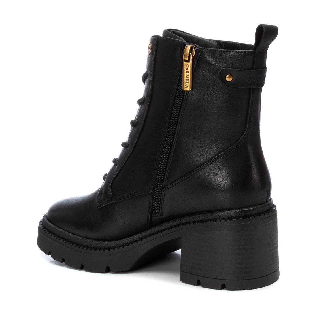 Bota feminina de cano curto, da marca Carmela. Feito de couro de alta qualidade. Fecho de zíper lateral e cadarços ajustáveis para maior ajuste e conforto. Sola grossa, antiderrapante e dentada.