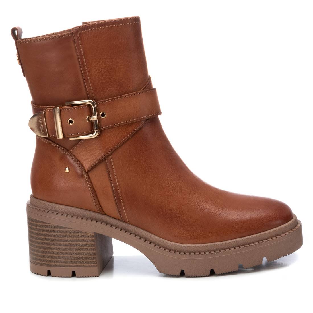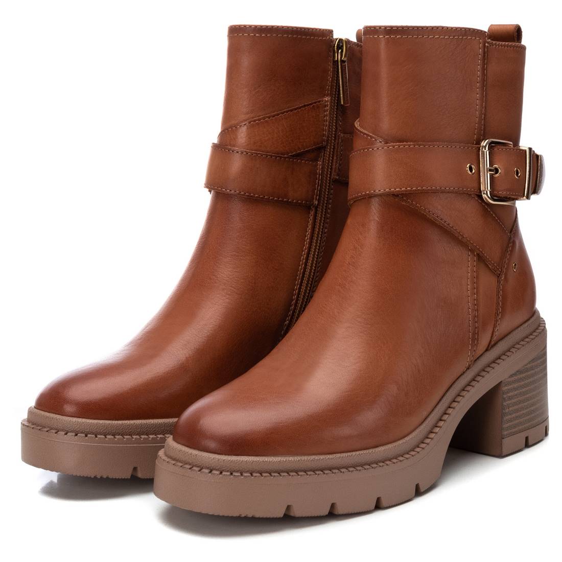 Botas femininas de cano curto, da marca Carmela. Feito de couro de alta qualidade. Fecho de zíper lateral. Puxador traseiro para fácil colocação. Com fivela metálica decorativa. Sola grossa, dentada e antiderrapante e salto de 7 cm. Um item essencial do inverno.