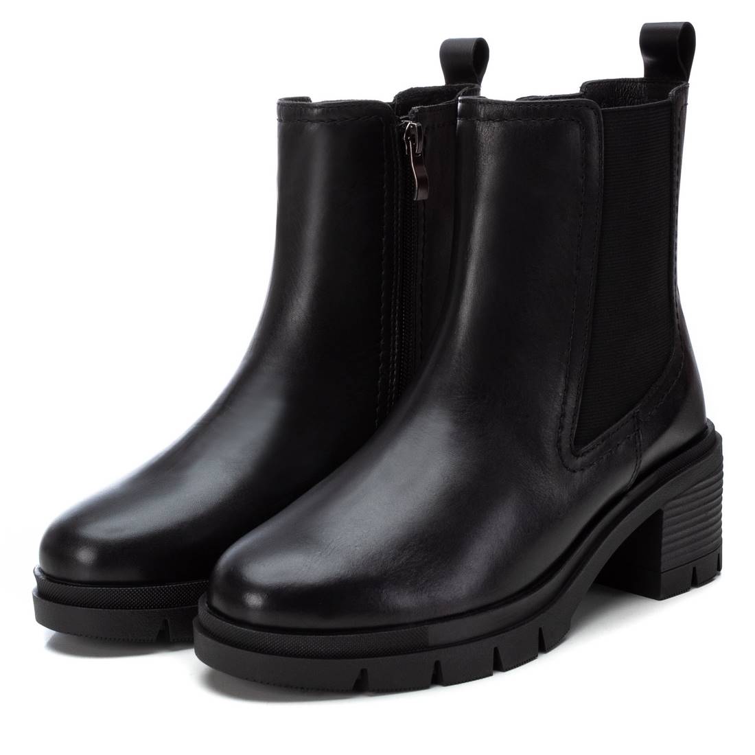 Bota feminina de cano curto, da marca Carmela. Feito de couro de alta qualidade. Fecho de zíper lateral com elástico para melhor ajuste. Puxador traseiro para fácil colocação. Salto de 7 cm de largura com plataforma frontal para maior conforto. Solado de borracha dentada e antiderrapante.