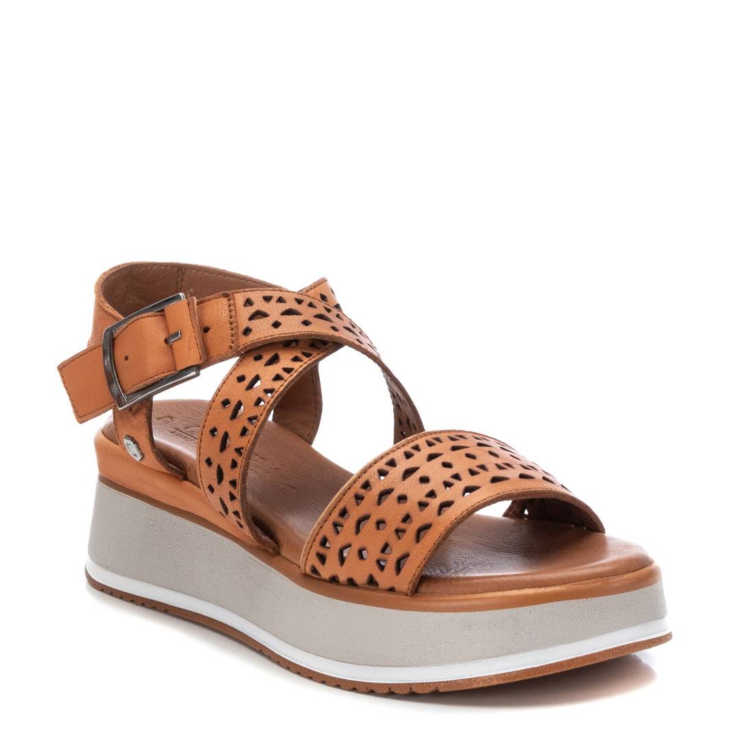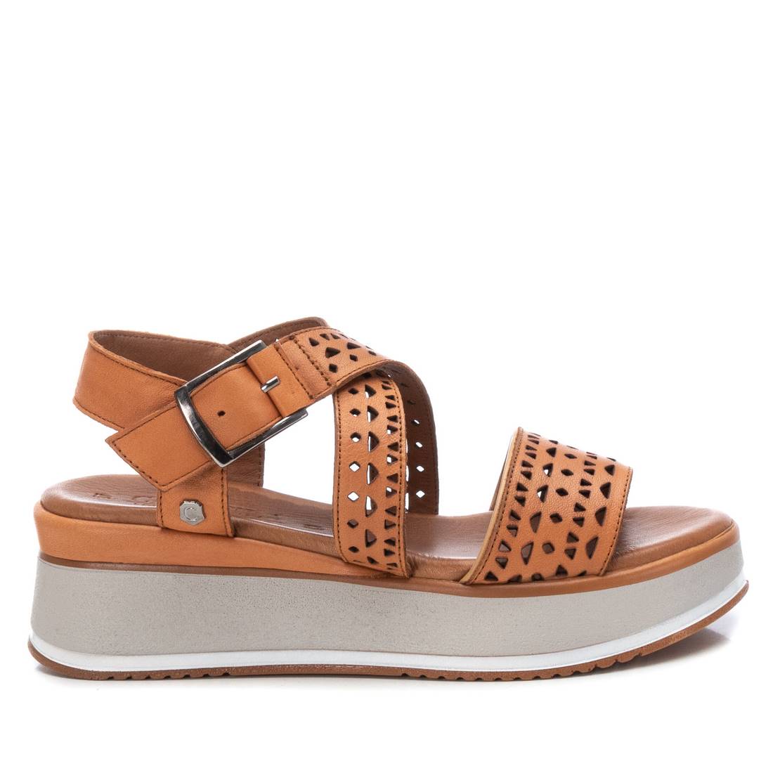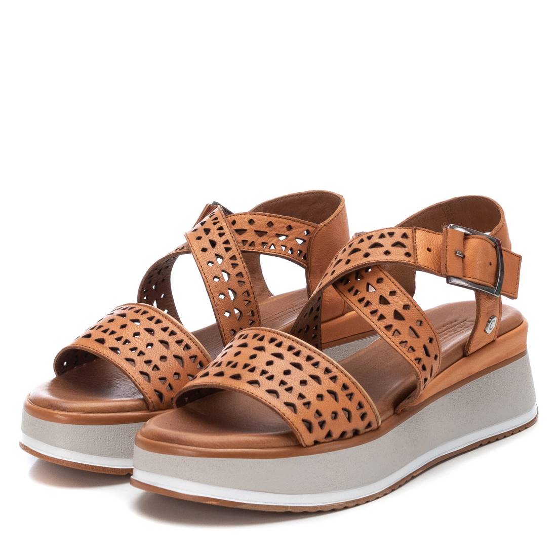 Sandália feminina, marca Carmela. Fabricado em couro de alta qualidade com desenho geométrico cortado. Modelo superior frontal com tiras cruzadas no peito do pé. Fecho de fivela. Cunha de 6 cm com plataforma para maior conforto. Sola antiderrapante.
