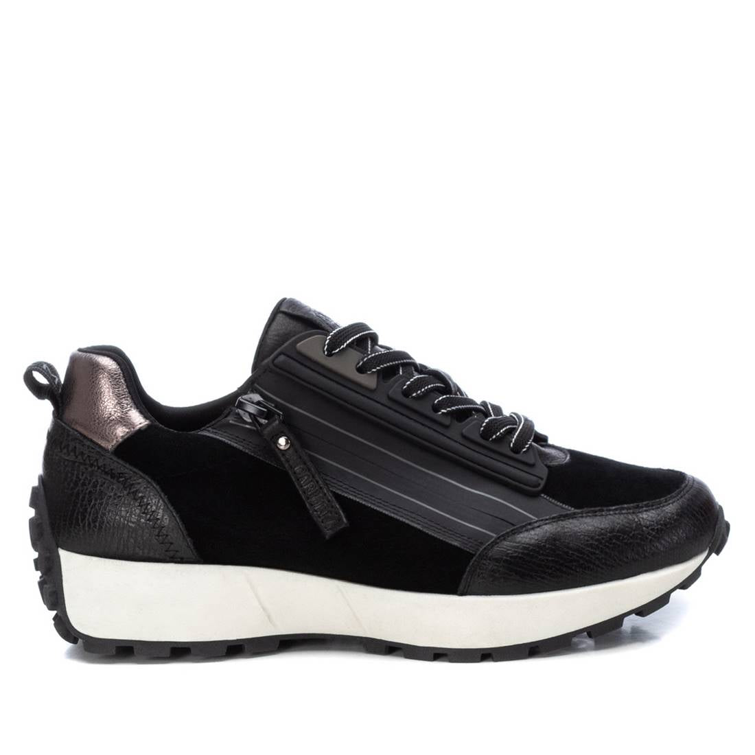 Tênis feminino, marca Carmela. Fabricado em couro de alta qualidade. Fecho lateral com zíper e cadarços ajustáveis. Sola de borracha antiderrapante moderna.