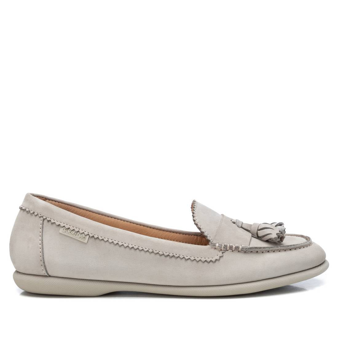 Sapato feminino, tipo mocassim. Marca Carmela. Fabricado em couro de alta qualidade, com costuras contrastantes. Sola confortável e sola de borracha antiderrapante.